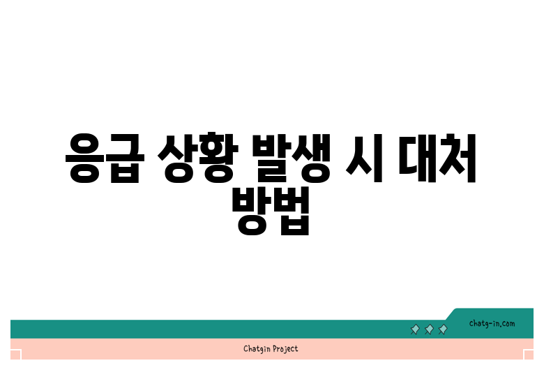 만약 심각한 응급 상황이 발생하면, 119에 신고하는 것이 제일 중요해요. 119는 24시간 응급 의료 서비스를 제공하며, 가장 빠르고 적절한 응급 의료 지원을 받을 수 있도록 도와줍니다. 응급 상황 발생 시 당황하지 말고 신속하게 119에 도움을 요청하는 것이 중요해요.