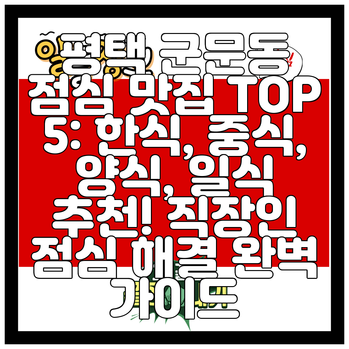 평택 군문동 점심 맛집 TOP 5: 한식, 중식, 양식, 일식 추천! 직장인 점심 해결 완벽 가이드