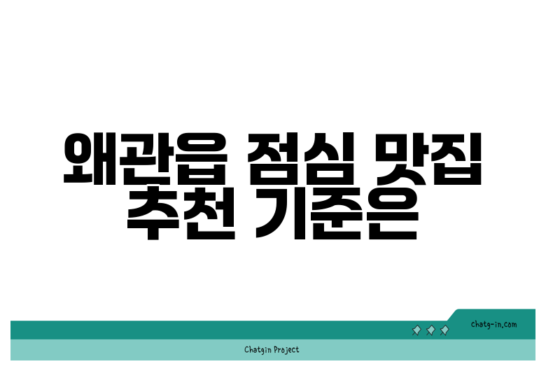 왜관읍 맛집을 추천하기 전에, 먼저 어떤 기준으로 선정했는지 알려드릴게요. 단순히 유명하다고 해서 추천하는 것이 아니고, 다음과 같은 기준으로 꼼꼼하게 검토했답니다.