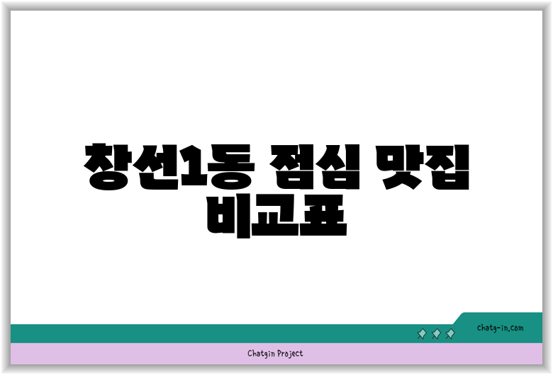 [가게이름1]은 창선1동에서 오랫동안 사랑받는 전통 한식 맛집입니다. 정갈한 반찬과 푸짐한 양으로 유명하며, 특히 김치찌개와 제육볶음은 밥도둑이라는 칭찬을 듣는 대표 메뉴입니다. 점심 특선 메뉴도 준비되어 있어 가성비까지 만족하실 수 있어요!