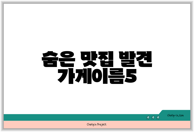 - 추천 이유: 숨은 맛집을 찾는 재미와 깊은 맛을 동시에 경험할 수 있습니다.