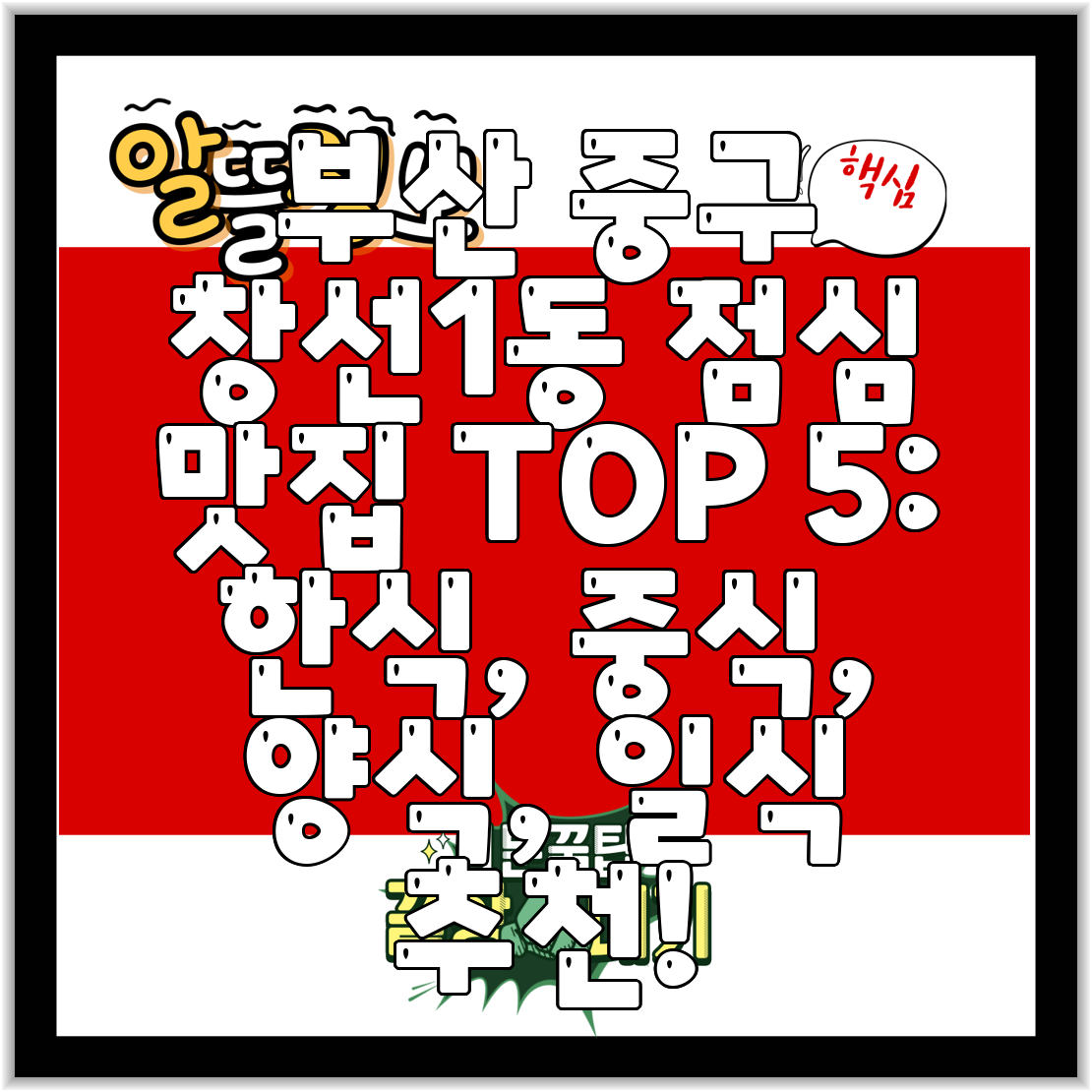 부산 중구 창선1동 점심 맛집 TOP 5: 한식, 중식, 양식, 일식 추천!