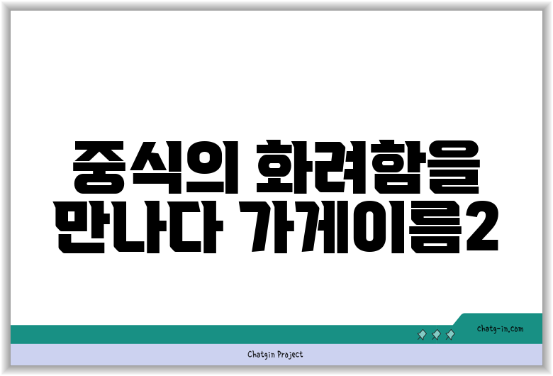 짜장면, 짬뽕, 탕수육… 중식의 매력에 빠지고 싶다면 [가게이름2]를 추천합니다. 화려한 비주얼과 풍부한 맛은 물론, 신선한 재료를 사용하여 건강까지 생각하는 곳이에요. 특히 짬뽕은 얼큰한 국물과 싱싱한 해산물이 가득 들어 있어 인기 메뉴입니다. 깔끔한 인테리어도 장점이죠!