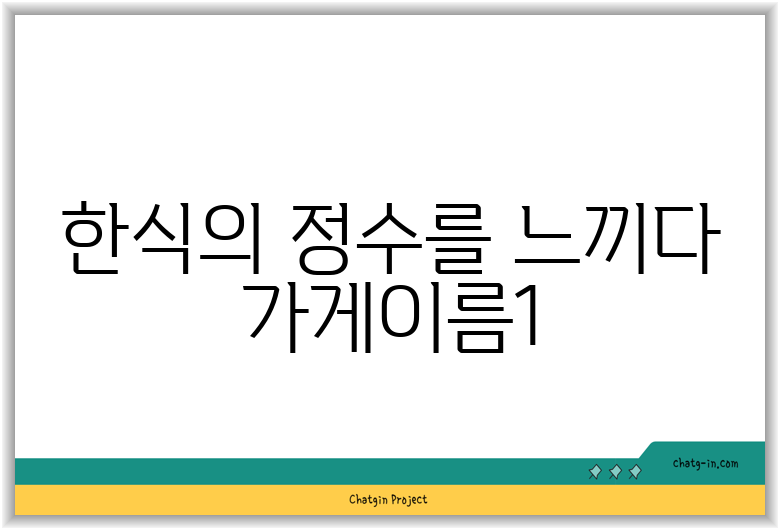 | [가게이름1] | 한식 | 김치찌개, 제육볶음 | 7.000원 ~ 12.000원 | 푸짐한 양, 정갈한 반찬 |