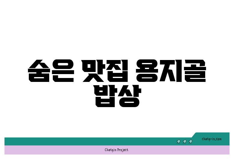 | 용지골 밥상 | 한식 | 돼지불고기 | 6.000원 ~ 9.000원 | 숨은 맛집, 현지인 추천 |