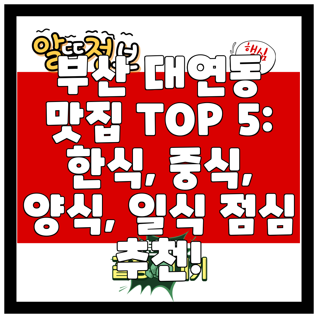 부산 대연동 점심 맛집 TOP 5: 한식, 중식, 양식, 일식 정복하기!