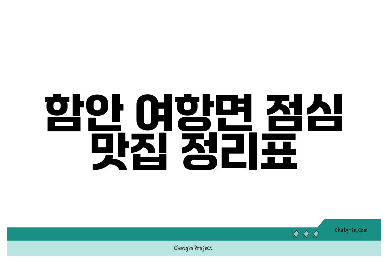 함안 여행 중, 맛있는 점심 식사로 행복한 추억을 만들어보세요! 바쁜 일정 속에서도 훌륭한 점심을 즐길 수 있도록, 함안군 여항면의 숨은 맛집들을 엄선하여 소개해 드릴게요. 한식부터 중식, 양식, 일식까지 다양한 취향을 만족시킬 TOP 5 맛집을 지금 바로 확인해보세요!