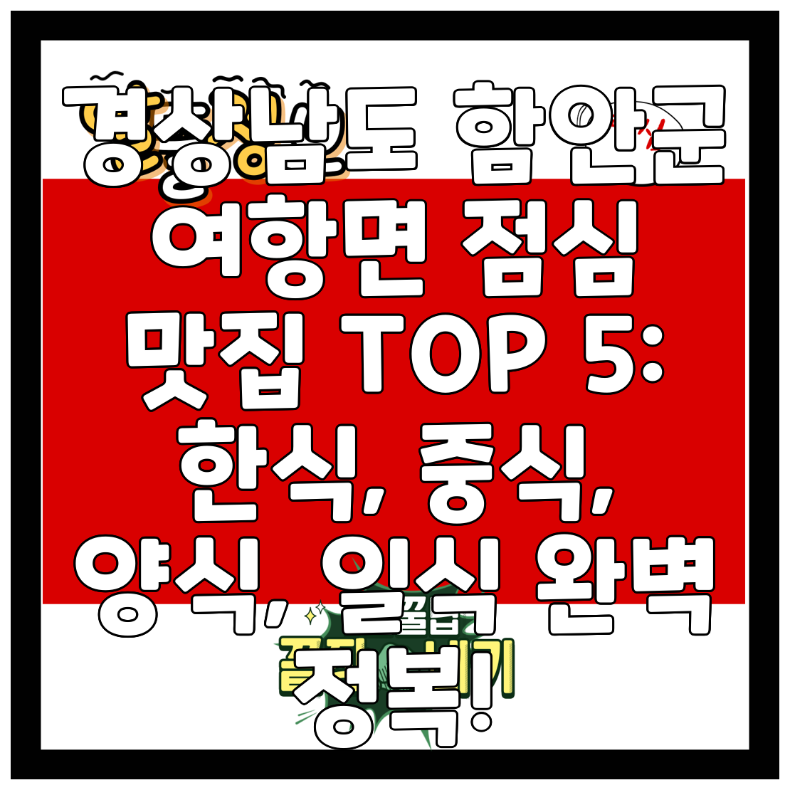 경상남도 함안군 여항면 점심 맛집 TOP 5: 한식, 중식, 양식, 일식 완벽 정복!