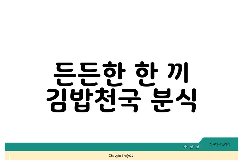 가볍게 한 끼를 해결하고 싶을 때는 누구나 아는 "김밥천국"을 빼놓을 수 없죠! 다양한 종류의 김밥과 라면, 덮밥 등 다양한 메뉴가 준비되어 있어 취향에 따라 골라 먹는 재미가 있답니다. 가격도 저렴하여 부담 없이 즐길 수 있다는 장점이 있어요. 금사회동동에서 간편하고 빠르게 점심을 해결할 수 있는 최고의 선택이 될 거예요.