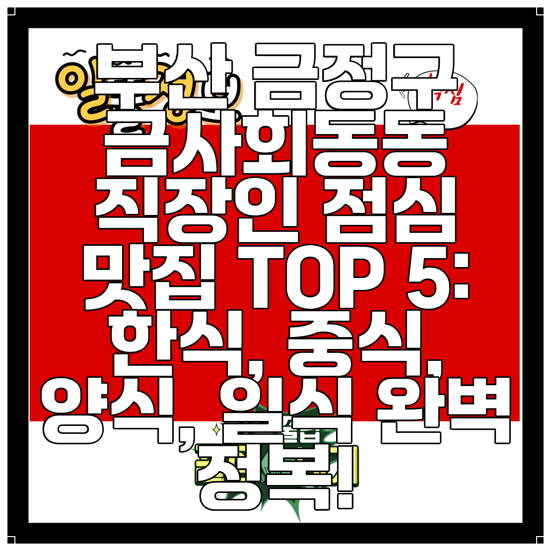 부산 금정구 금사회동동 직장인 점심 맛집 TOP 5: 한식, 중식, 양식, 일식 완벽 정복!